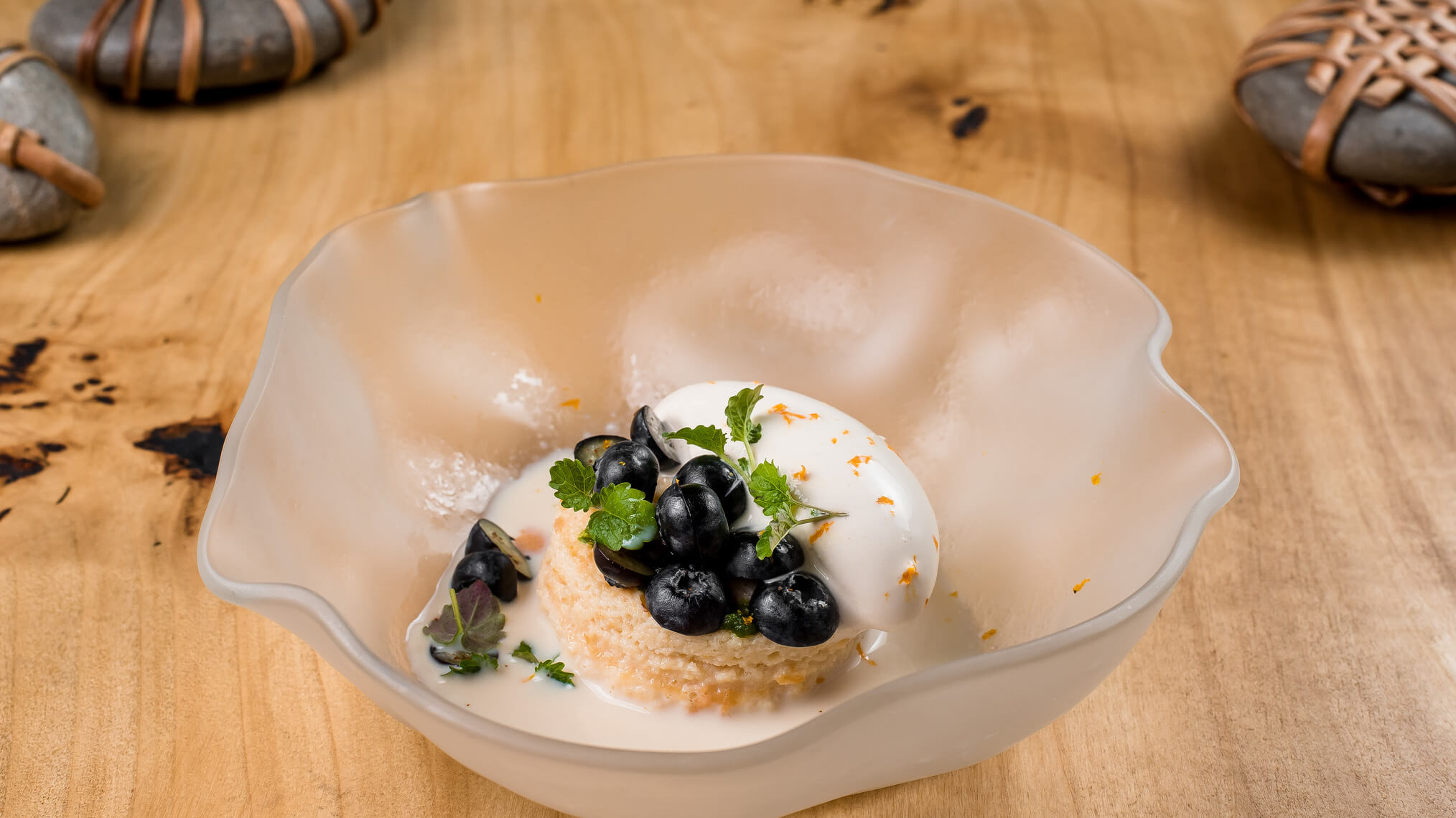 • забытая в молоке ватрушка, мороженое с цедрой лимона, гель петрушка с перечной мятой.